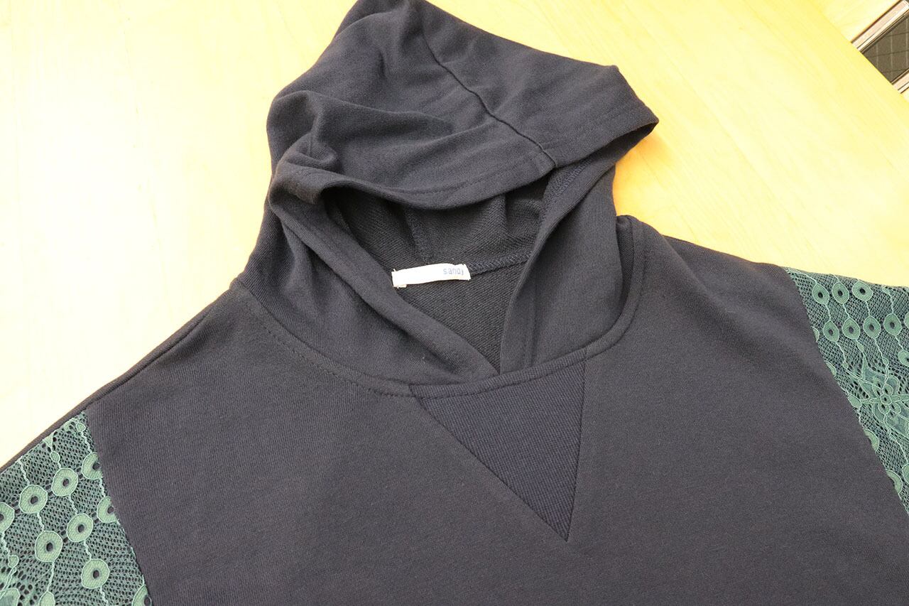 ゆったりとしたシルエットとフードが、リラックスした着心地を演出します。カジュアルなデザインながら、レースの切り替えが上品なアクセントになっています。普段使いからちょっとしたお出かけまで、コーデのポイントになるアイテムとして、一枚持っていると便利なアイテムです。着心地の良さとおしゃれポイントが両立した、幅広いシーンで活躍してくれる一枚です。